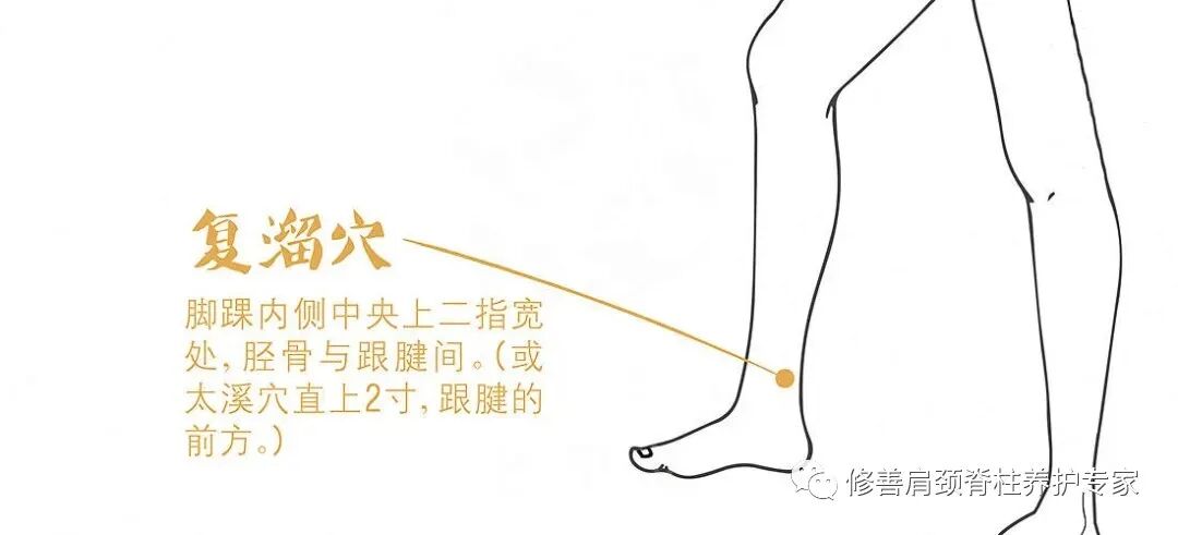“复溜” 的意思就是:如果水液停滞不流,刺激此穴能让它重新循环起来。由此可见复溜穴的滋阴作用有多么强大。